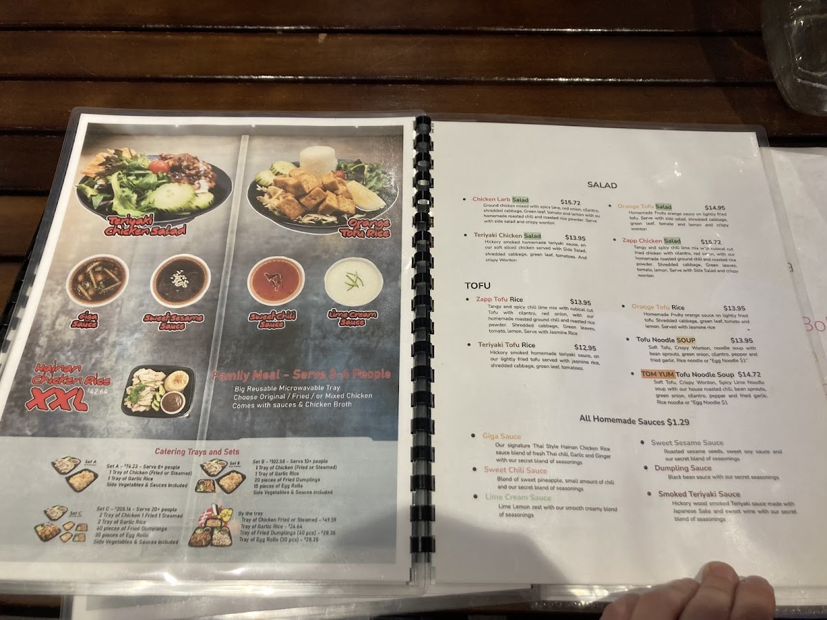 Our best selling soft sliced steamed chicken is served with Garlic ginger infused rice and our signature Giga sauce, Sesame sauce, shredded cabbage, cucumber and cilantro.