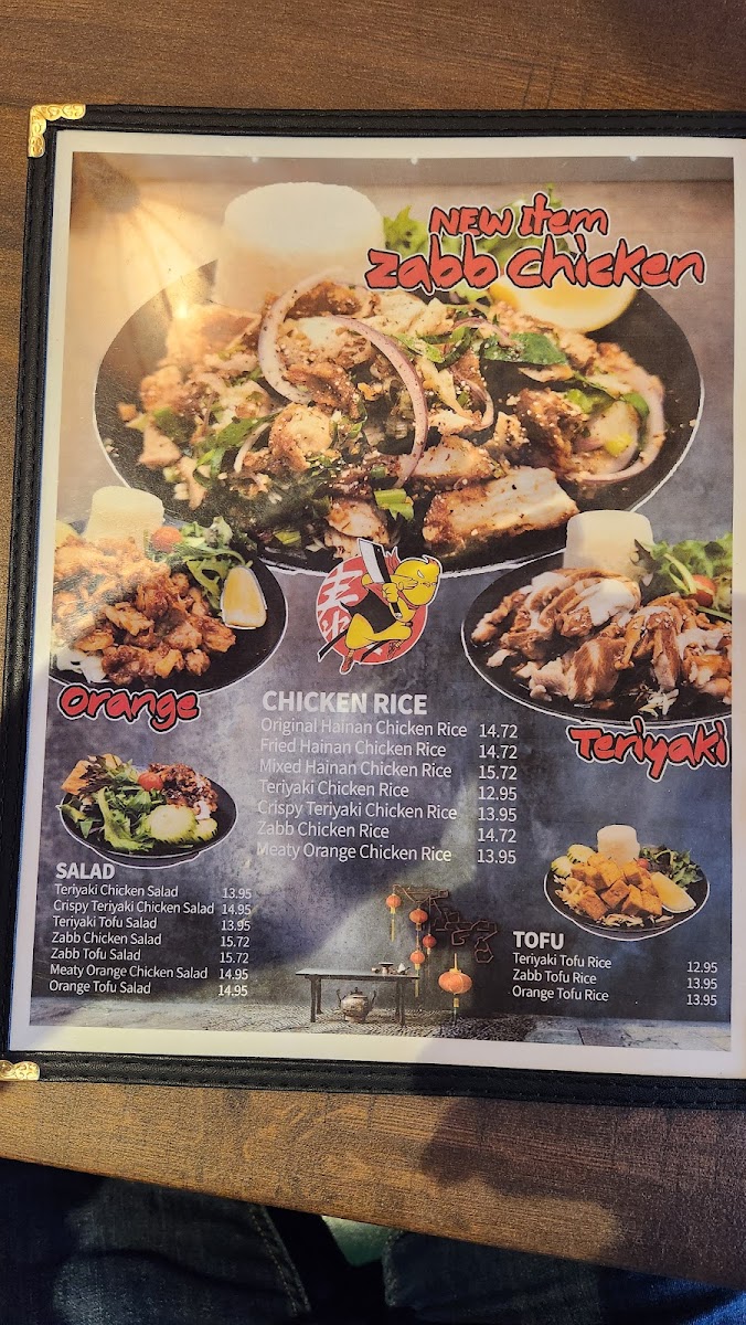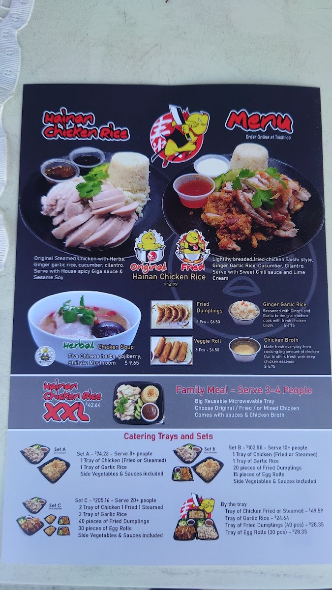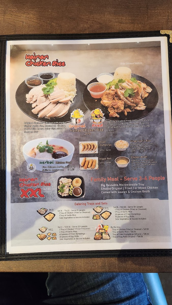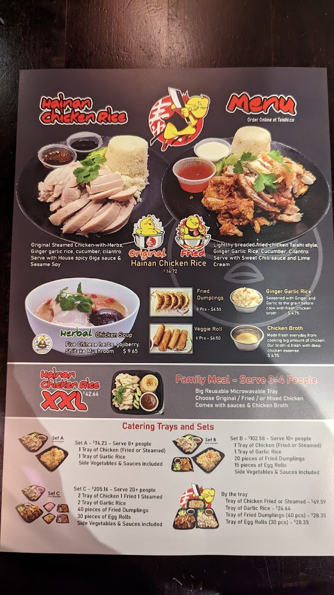 Half soft sliced steamed chicken and half sliced fried chicken served with Garlic ginger infused rice, Giga sauce and sweet chili sauce, shredded cabbage, cucumber and cilantro.